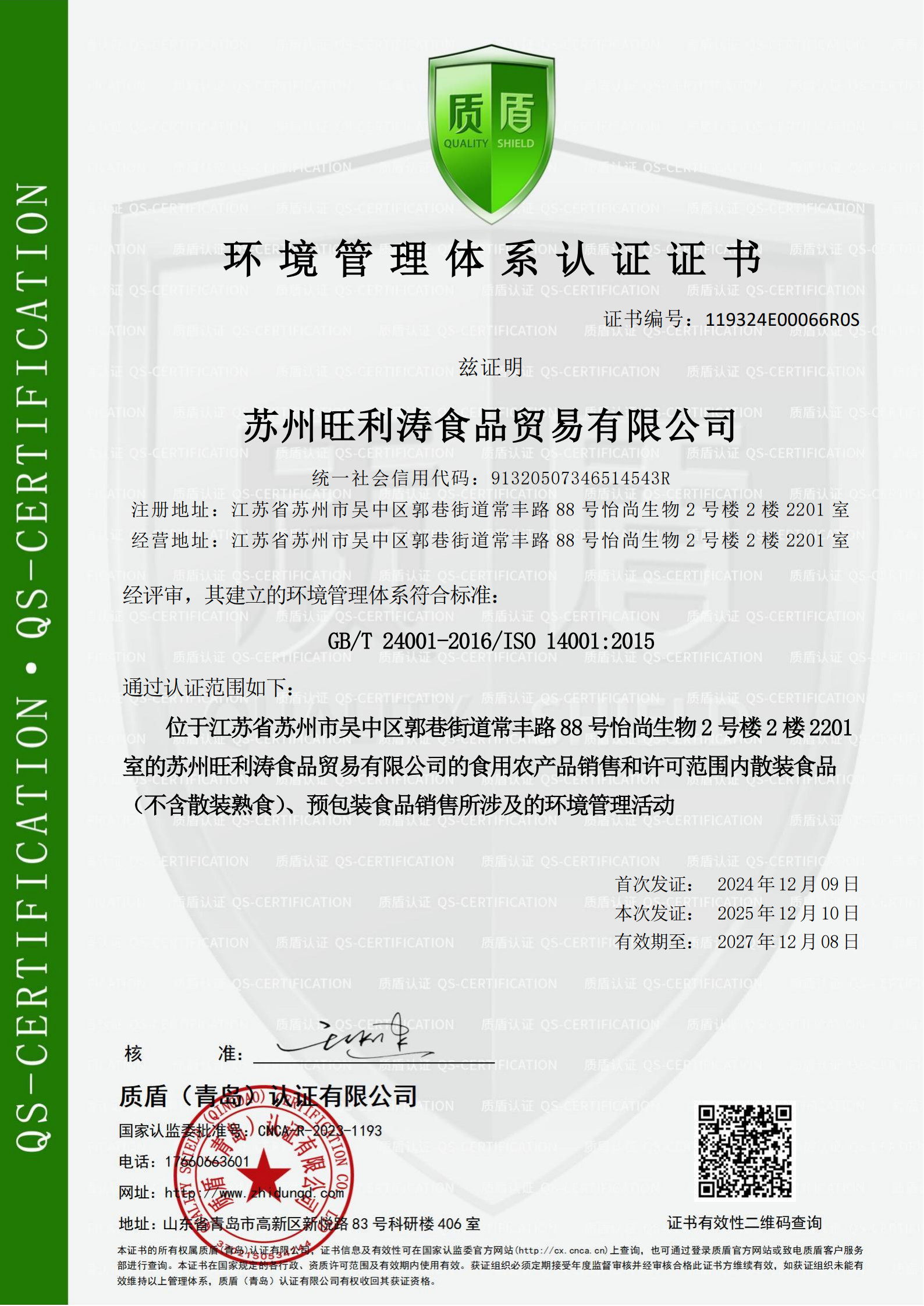 旺利涛的合规硬实力,源于四大权威体系认证的全面覆盖与深度落地,这四大体系相互支撑、层层递进,贯穿食材配送全生命周期,从管理标准、食品安全、环境保障到人员健康,实现无死角合规管控。